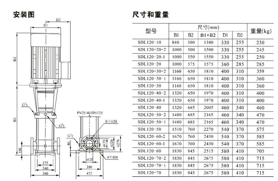 南元SDL120/SDLT120立式多級(jí)離心泵有不同的泵規(guī)格和不同級(jí)數(shù),以滿足所需的流量和壓力。