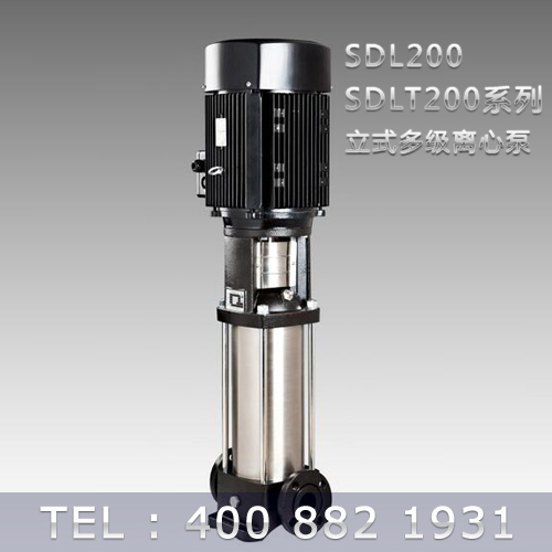SDL200/SDLT200為配用標準電機的非自吸立式多級離心泵,電機軸和泵軸用聯軸器直接聯接,把拉桿用螺母將外筒,過流部件固定在支架和進出水體之間,泵進出水口在泵底部的同一直線上。泵可根據需要配置智能保護器,對泵的干轉、缺相、過載等進行有效的保護。