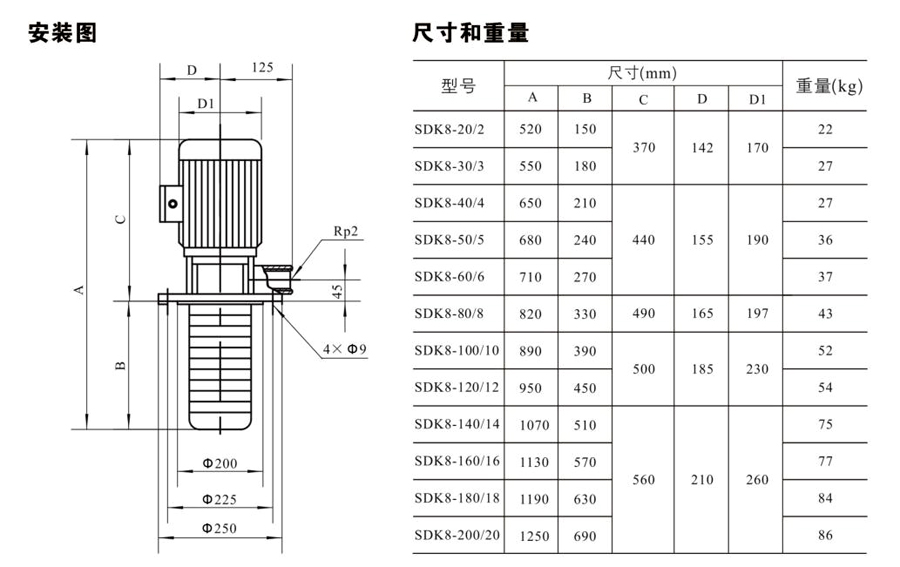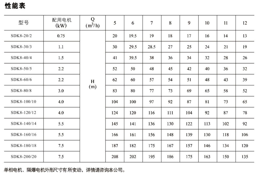 SDK8/SDKT8為配用標準電機的非自吸立式多級離心泵,電機軸和泵軸用聯(lián)軸器直接聯(lián)接的結構。為滿足水槽或容器的安裝深度,可安裝空套的腔體來改變泵本身的侵入 深度。